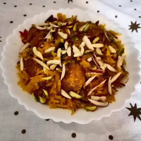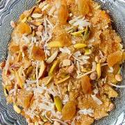 Generally, the traditional thaal is first adorned with Mithaas. Invitees for jaman-feast is given salt (pinch) by mayzbaan and then he takes a luqmah (morsel) of mithaas along with all those sitting on the thaal. This way the meal begins and mithaas is followed by kharaas and then the main course of jaman is taken. The dish made from rice with varied ingredients is preferred in the main course. Mithaas is garnished with fresh and dry fruits. Halwa is made of different seasonal fruits as mithaas. |