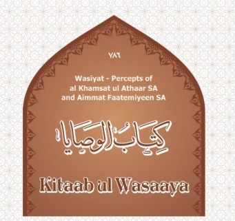 Wasiyat of the Imaams done to their Shi’as and followers is a separate chapter in the Kitaab ul Walaayat. Wasiyat means injunctions or moral teachings or enjoinments. Translation of this chapter of Wasiyat has been named as “Kitaab ul Wasaaya” (pl. of Wasiyat) in the Khidmat of Mumineen. |