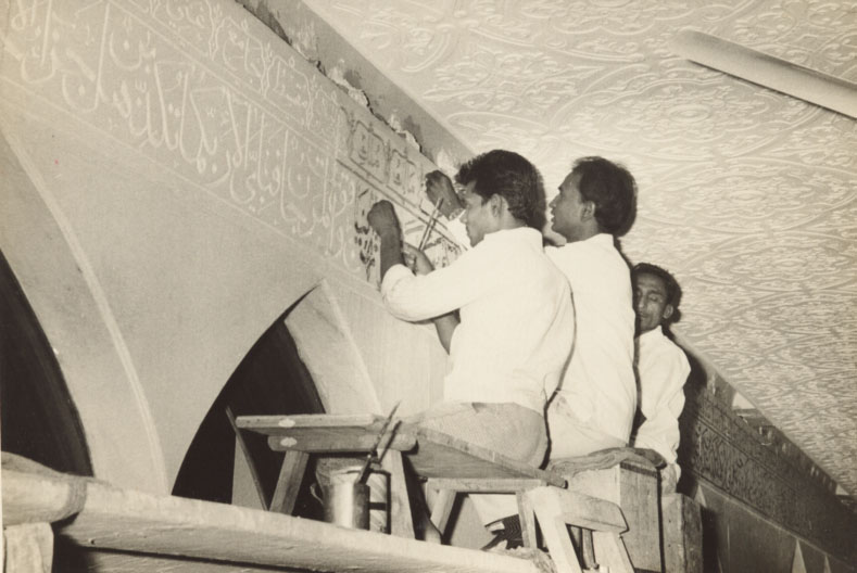 Masjid-e-Nooraani ni ground floor ni diwaaro par Surat ur-Rehmaan ni ghani umdah kaarigari thi naqqaashi kidheli che. Jeni kitaabat ane khoob-surati ne jowa loko dur-dur thi aawta hata. Aa Qur'ani Surat na huroof ma sona nu waraq chadhaawwa ma aawu hatu. Te waaste Mumbai thi maahiro ane kaarigaro ne bolaawa hata. Tasweer ma Mo'een ud-Da'wat Mohammad Husain Zenithwala kaarigar saathe waat-cheet kari rahya che.