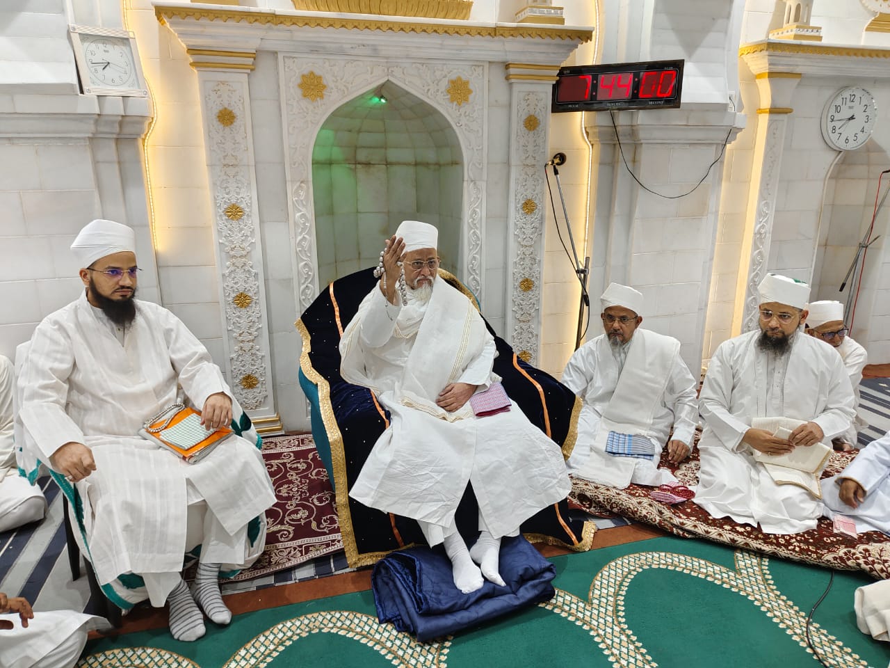 Accepting the invitation from Fakhri Mohalla Mumineen, Aqaa Maulaa Dr Saiyedna saheb TUS visited Musanji Masjid on 12th Shahrullaah, Thursday with Faatemi Shaan and Taiyebi Jalaal. Mumineen welcomed Aqaa Maulaa TUS with Imaani warmth and offered Maghrib-'Ishaa Imaamat namaaz with him. Roza-iftaari ziyaafat for all was arranged as a part of Maulaa's visit. Maulaa gave mubaarak name of 'Shubbaan e Musanji' to a group of hardworking mumineen who are always ready to do any khidmat of Jamaa'at whether it be of jaman or majlis or masjid or mayyet umoor.