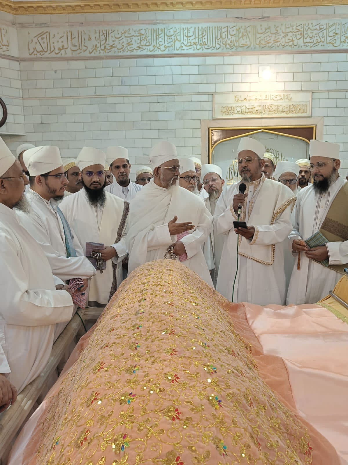 Qaseedah Muneerah was recited on the Qabr e Anwar of both Muqaddas Maulaa, “Aye Bawaji saheb, Da’wat na cho Sitaarah, Mu’min na cho Sahaara.” for Maulaa Ziyauddin saheb and “Aye Badruddin Sarwar, Laakho Salaam Tum par, Aye Deen e Haqq ke Rehbar, Laakho Salaam Tum par.” for Maulaa Badruddin saheb. |