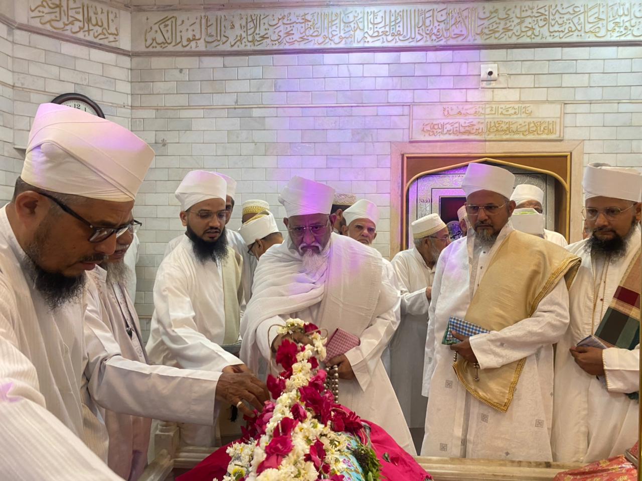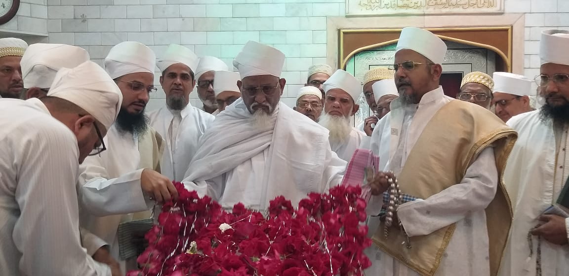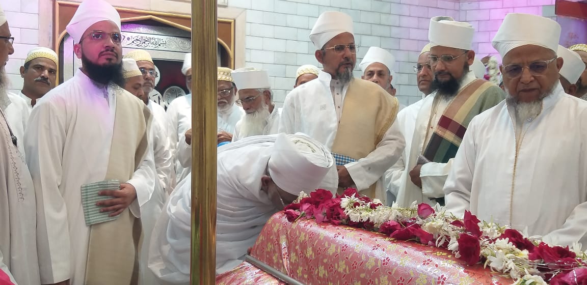 Looking at the current situation of countrywide Lockdown imposed by the Government to contain the fast spreading Corona Virus the Urs Mubaarak of 44th Da'i e Mutlaq Saiyedna Taiyeb Ziyauddin Saheb AQ was called off for the Mumineen. However, Huzoor e 'Aali TUS after Fajr Namaaz along with Mukaasir Saheb DM, Ra's ul hudood Saheb DM and Shahzaada Saheb visited the Rozah Mubaarakah of Muqaddas Maulaa situated behind Masjid e Nooraani.